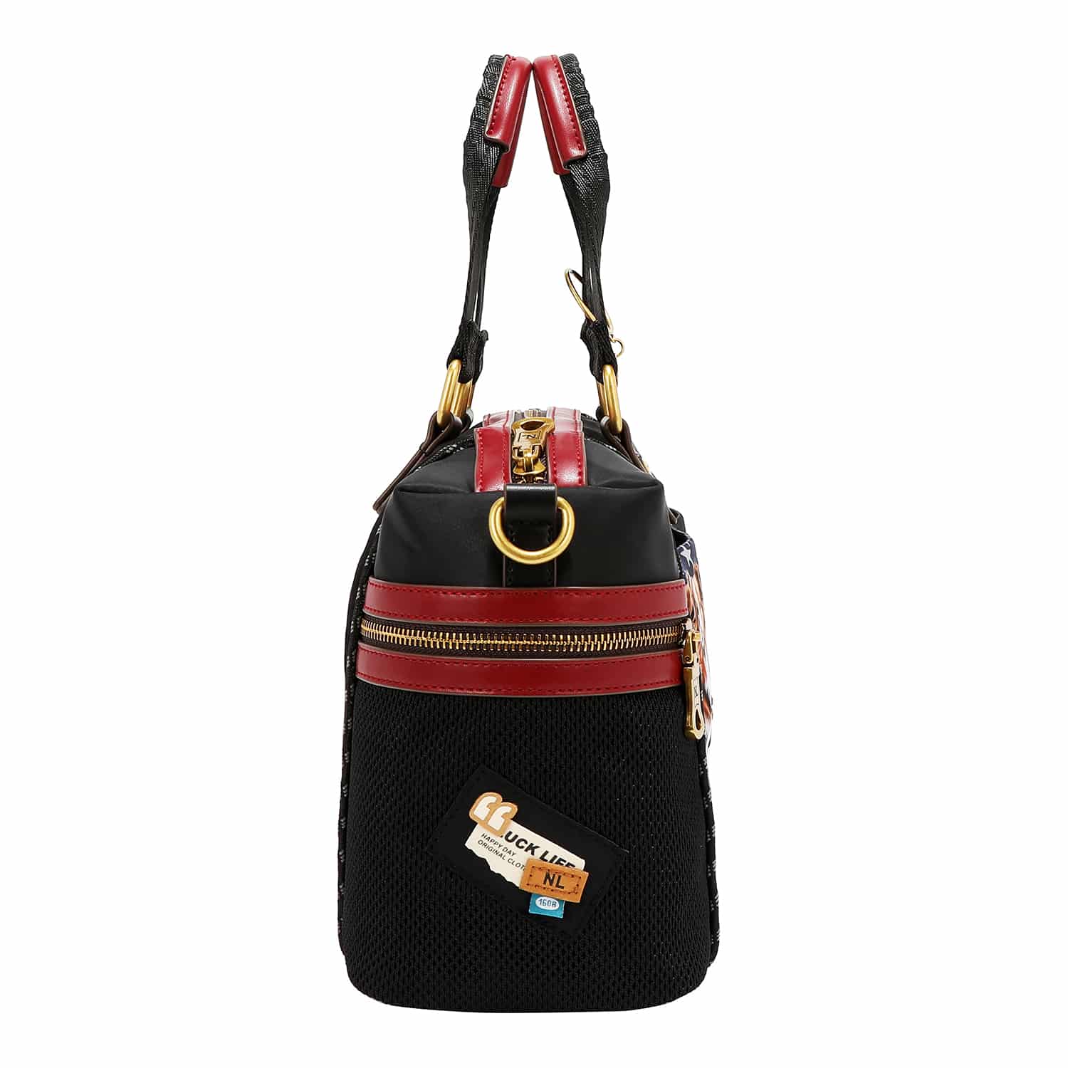 - Exterior ligero de poliéster con detalles en cuero vegano