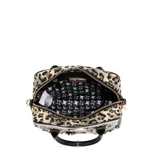 Destaca con esta elegante bolsa de mano Nicole Lee, ideal para mujeres que buscan combinar estilo y funcionalidad en su día a día. Su diseño fusiona un sofisticado estampado animal print con ilustraciones exclusivas de la marca, creando un accesorio moderno y lleno de personalidad.