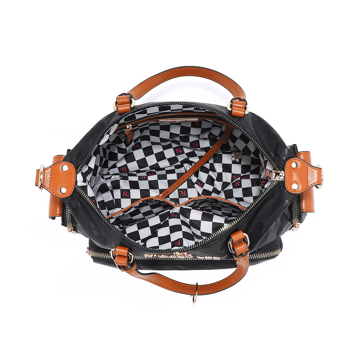 Letra del logotipo en el herraje y tiradores de cremallera grabados